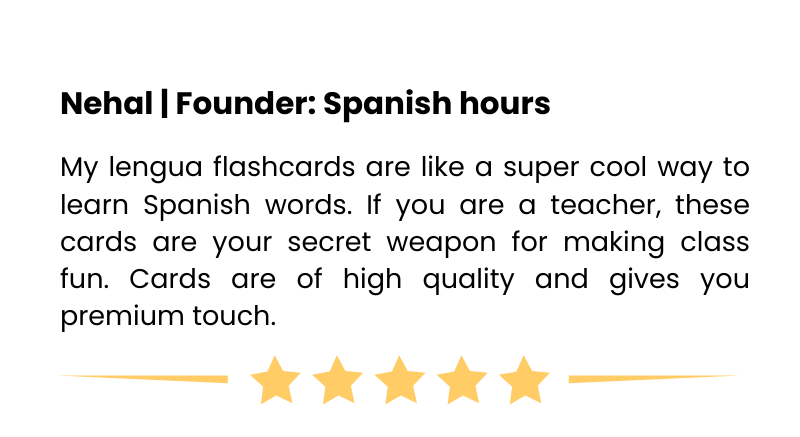 The cards are made in such a way that anyone without any prior knowledge of Spanish can use any topic and get benefited from it. All the basic information about the concepts required is mentioned according to the topic.