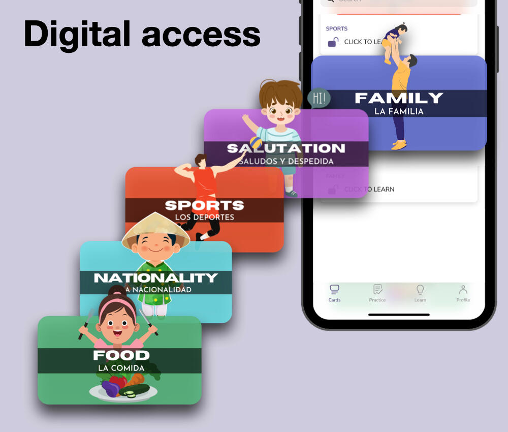 Our English to Spanish flashcards are the perfect solution for anyone who wants to learn Spanish 3x faster.