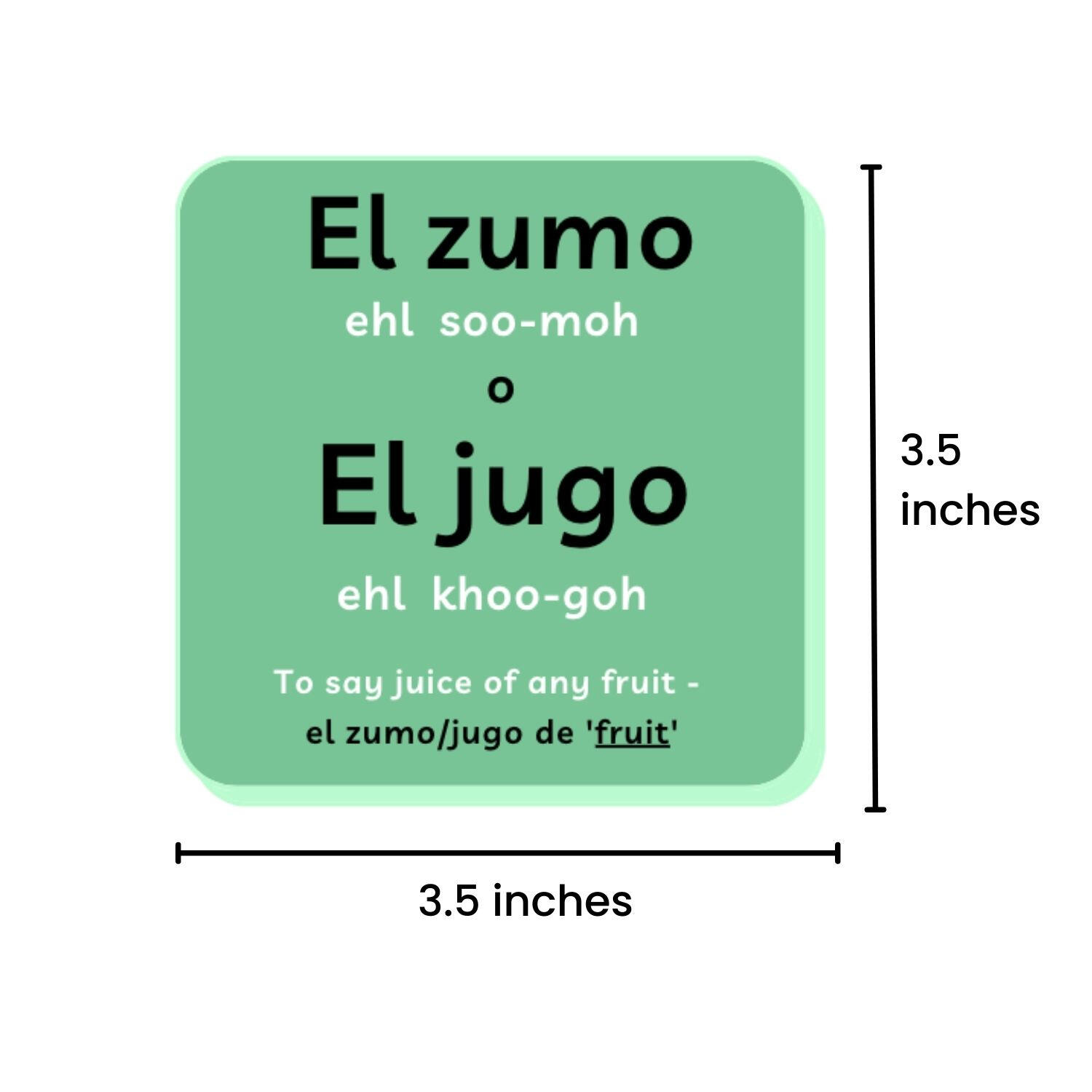 Parents can help their child learn a particular topic from our perfected designed flashcards that has visual stimulus and english vocabulary on one side and Spanish vocabulary with phonetic pronunciation on the other side.