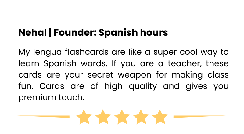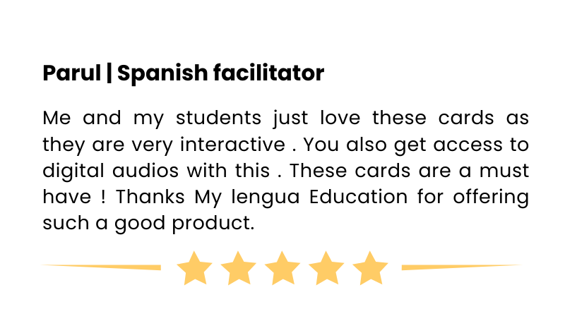 The cards are made in such a way that anyone without any prior knowledge of Spanish can use any topic and get benefited from it. All the basic information about the concepts required is mentioned according to the topic.